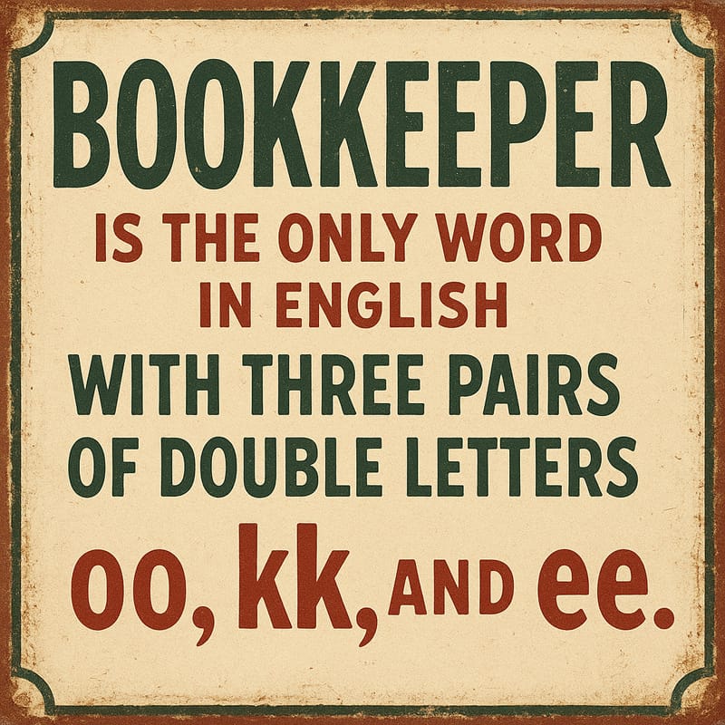 At first glance, bookkeeper seems pretty ordinary. But look closer, and you’ll spot a record-breaking quirk hiding in plain sight. It’s the only word in English with three pairs of double letters in a row: oo, kk, and ee.
