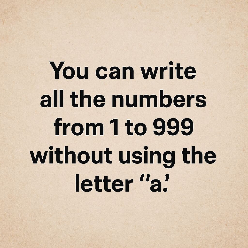 You can write all the numbers from 1 to 999 without using the letter 'a.'