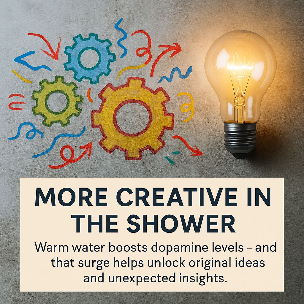 People are more creative in the shower. Warm water boosts dopamine levels — and that surge helps unlock original ideas and unexpected insights.